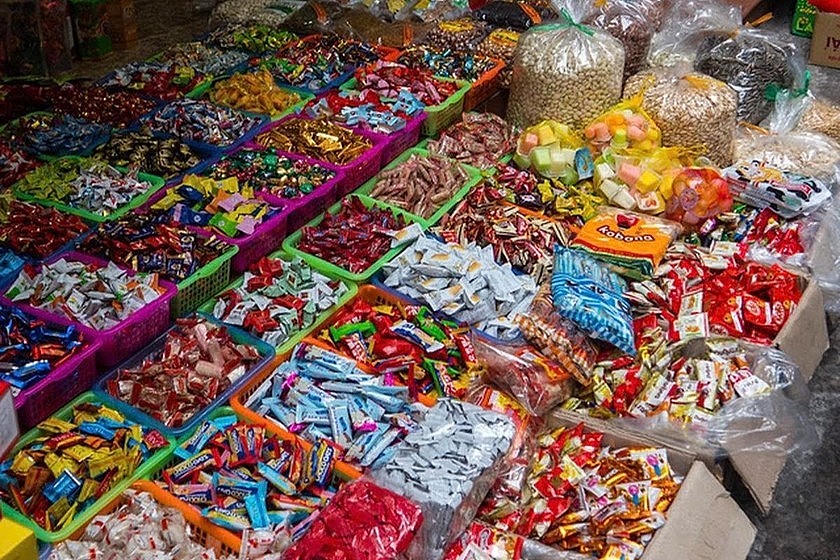 Tại các chợ đầu mối và một số kênh bán online bánh kẹo, trái cây, thực phẩm khô được rao bán với giá cực rẻ, nhưng không có tem nhãn phụ, giấy kiểm định chất lượng. Một số sản phẩm qua kiểm tra còn bị phát hiện nhiễm hóa chất độc hại hoặc đã hết hạn sử dụng.