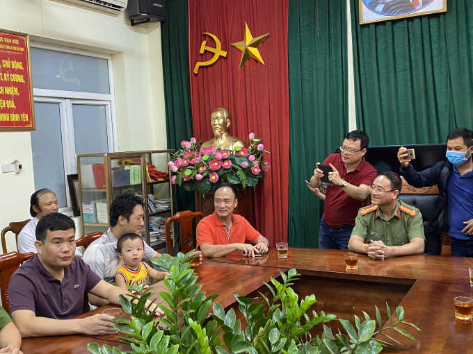 Lãnh đạo Công an tỉnh Bắc Ninh và gia đình cháu bé vui mừng khi cháu an toàn trở về. Ảnh: Hoàng Dương