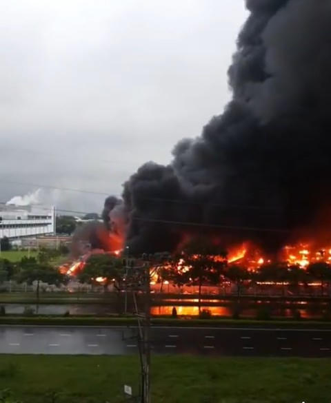 Một vụ hỏa hoạn xảy ra tại KCN Yên Phong, Bắc Ninh lửa bùng phát dữ dội, khói đen cuồn cuộn, các lực lượng chức năng đã tiếp cận dập lửa.