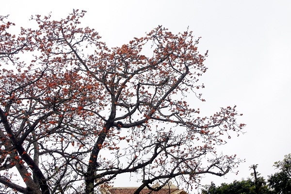 | Hoa gạo nở đỏ rực một góc trời. |