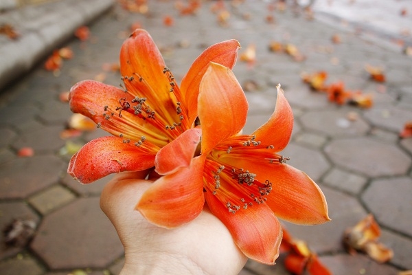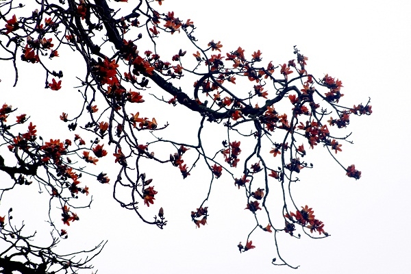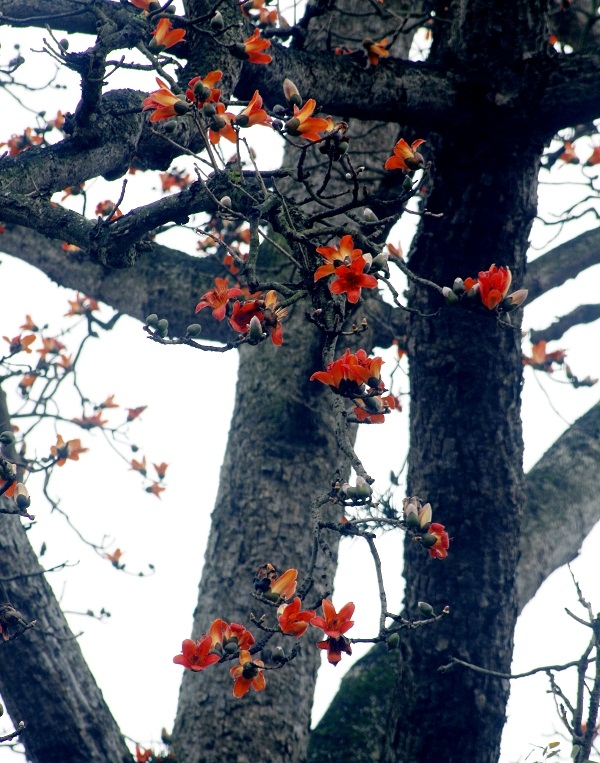 | Những cây gạo bung nở những bông hoa rực lửa báo hiệu một mùa hè sắp đến. |