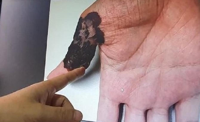 Thông tin về trường hợp bệnh nhân nêu trên, Thạc sĩ Nguyễn Đình Quân, Phó trưởng khoa Phẫu thuật tạo hình thẩm mỹ và phục hồi chức năng, Bệnh viện Da liễu Trung ương, Hà Nội, cho biết: Nốt ruồi của nam bệnh nhân có đường viền khúc khuỷu và lan ra một nửa ngón tay cái, bề mặt gồ ghề. Kết quả sinh thiết cho thấy anh bị ung thư tế bào hắc tố, đây là một loại ung thư da hiếm gặp.