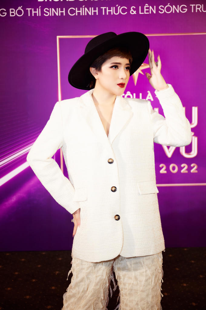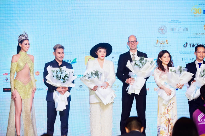 Cô nhận hoa tri ân là người đồng hành cùng Hoa hậu Hoàn vũ Việt Nam 2022.