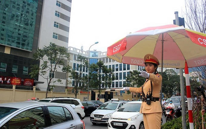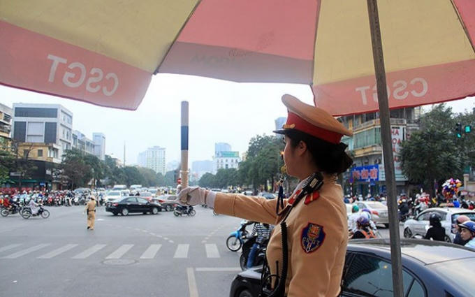 Ngày Quốc tế Phụ nữ, nhiều phụ nữ vui vẻ nhận quà thì nhiều nữ cảnh sát CSGT Thủ đô vẫn cần mẫn làm nhiệm vụ tại các ngã tư đường phố.