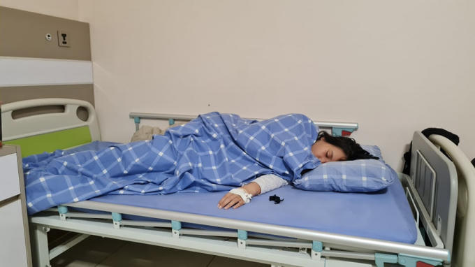Nữ sinh T. nhập viện trong tình trạng hoảng loạn sau khi bị nhóm đối tượng hành hung (hình ảnh do gia đình nạn nhân cung cấp).