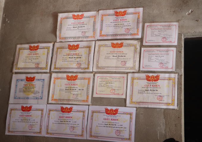 Nhìn những tấm giấy khen được treo trang trọng bên tường nhà và mép tường cạnh bếp nơi Linh Chi vừa nấu ăn vừa học bài qua ánh sáng của ô kính trên ống khói rọi xuống khiến ai cũng xót xa.