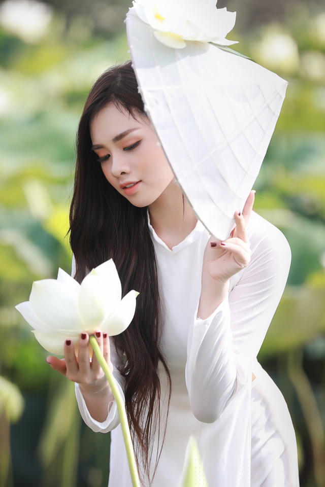 Ngắm trọn bộ ảnh của Cao Trang ở đầm hoa sen trắng.