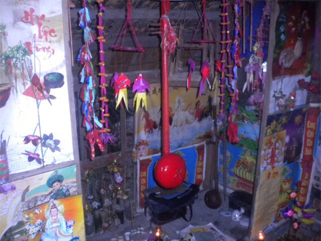 Nói rồi, thầy mo Tà Phìn chỉ cho chúng tôi xem những ống nứa nhỏ được xếp thành dãy dài niêm phong cẩn thận. “Trong này là hồn phách của “ma cà rồng”, nhưng đã bị ta làm phép niêm ấn cả rồi, giờ chúng không đủ sức để hại người nữa”, vừa nói, thầy mo vừa dùng “nước phép” vẩy vào những ống tre khô được treo lủng lẳng trước điện thờ “thần ma”.