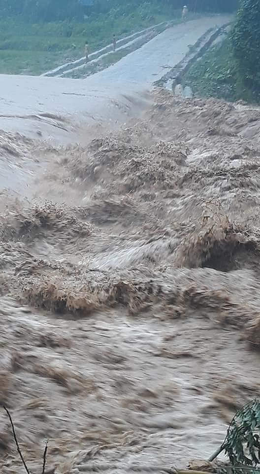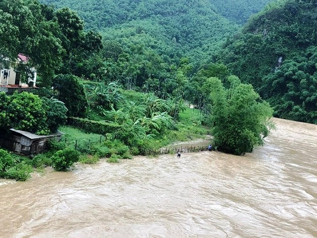 Nước sông dâng nhanh trong sáng 3/8 tại Mường Lát