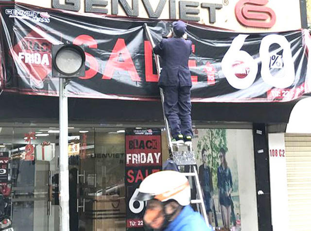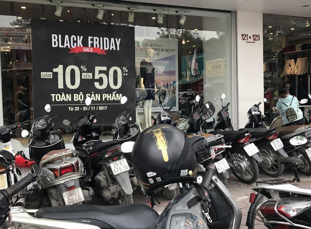 Khắp các tuyến phố ở Hà Nội đều treo biển quảng cáo giảm giá nhân dịp Black Friday, khiến người dân ùn ùn kéo tới mua vì sợ hết hàng.