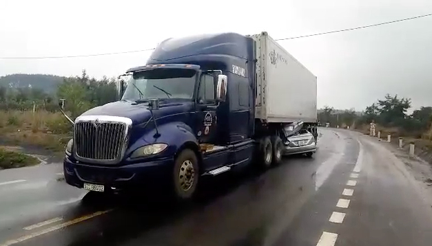 Cú tông mạnh khiến 2 người trên xe ô tô con chết tại chỗ, kẹt cứng trong cabin. Tại hiện trường, chiếc xe 4 chỗ lọt xuống gầm xe container, phần đầu hư hỏng nặng.