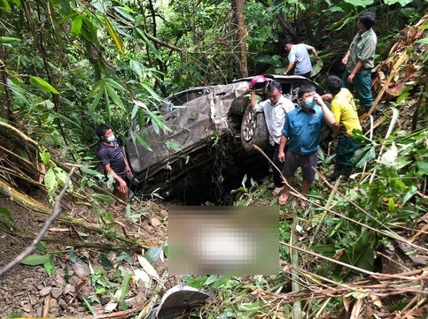 Xe bán tải đi đến tỉnh lộ 128 thuộc địa phận xã Làng Mô, huyện Sìn Hồ (Lai Châu) thì bất ngờ bị lao xuống vực sâu khiến 2 người tử vong.