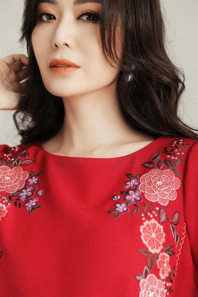 Loạt trang phục của NTK Xuân Lê có chất liệu từ lụa tơ tằm, organza cao cấp của Italy và đa dạng về màu sắc từ tím, hồng nhạt, xanh bạc hà, đỏ. Các mẫu đầm với phom dáng cơ bản nhưng lại vô cùng tinh tế nhờ chi tiết thêu họa tiết hoa mẫu đơn bằng organza đắp nổi trên nền vải lụa.