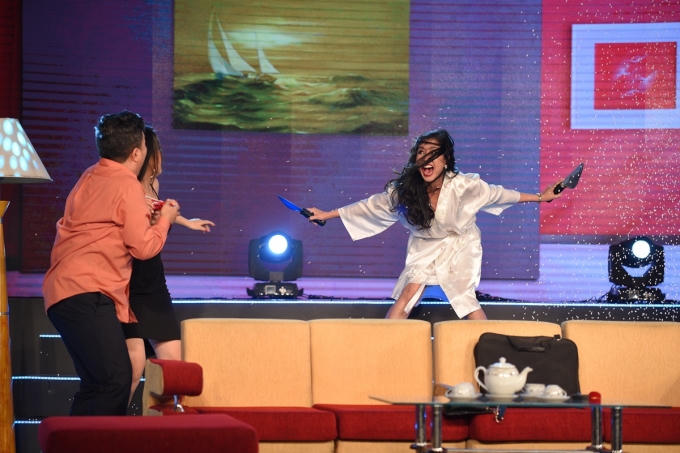 Ốc Thanh Vân cầm dao xử chồng trên sân khấu