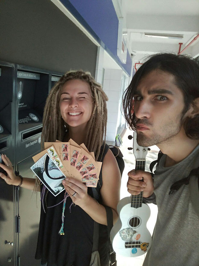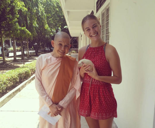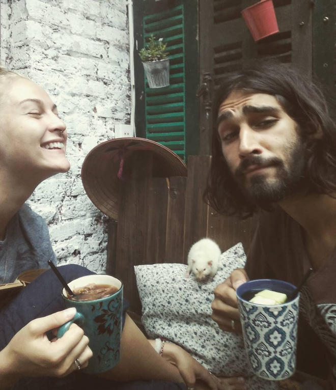 Cô gái có chia sẻ trên Instagram:"Chúng tôi đi du lịch cùng với một con chuột, chúng tôi mang những nụ cười, những cái ôm cho những ai cần chúng".