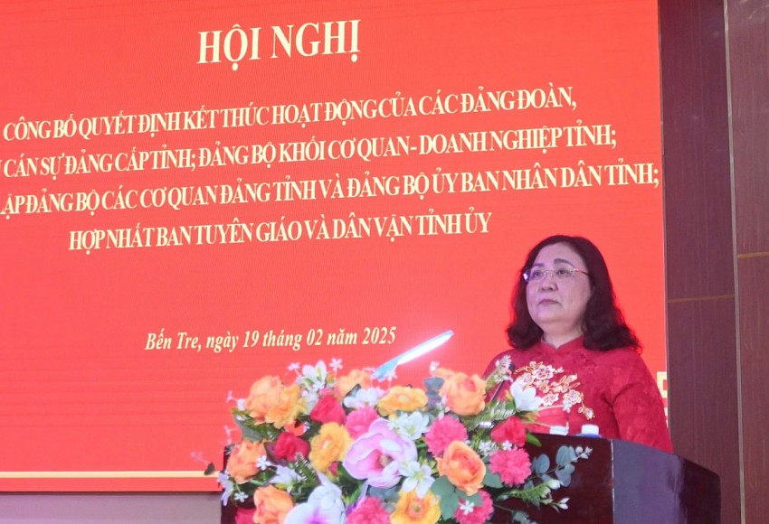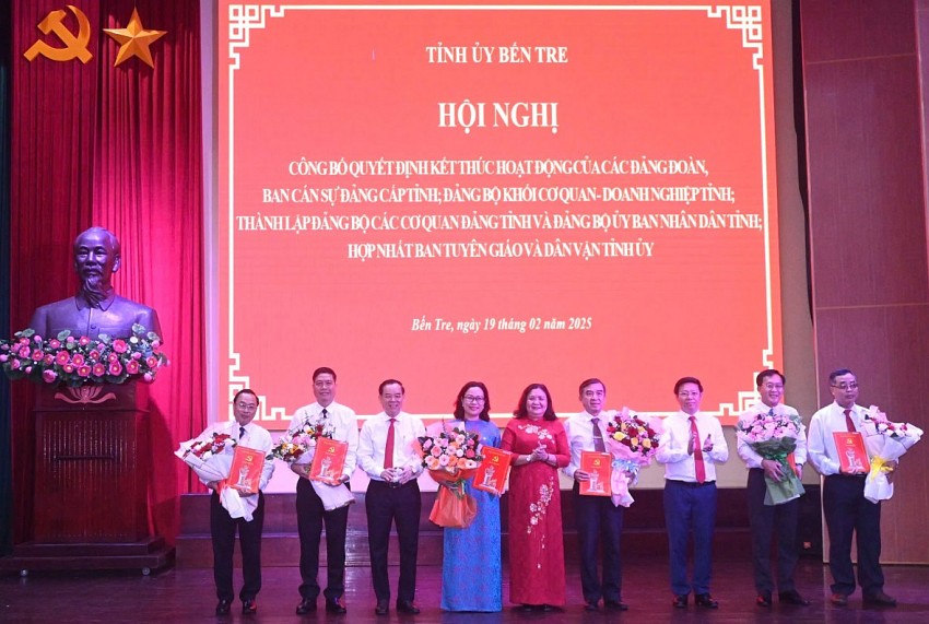 Ngày 19/2, Tỉnh ủy Bến Tre tổ chức Hội nghị công bố qyết định kết thúc hoạt động của các đảng đoàn, ban cán sự đảng cấp tỉnh; đảng bộ khối cơ quan – doanh nghiệp tỉnh. Đồng thời, thành lập đảng bộ các cơ quan đảng tỉnh và đảng bộ ủy ban nhân dân tỉnh; hợp nhất Ban Tuyên giáo và Ban Dân vận Tỉnh ủy.