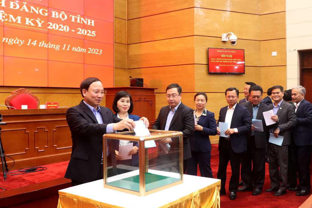 Ban Chấp hành Đảng bộ tỉnh Quảng Ninh bỏ phiếu giới thiệu nhân sự kiện toàn các chức danh (Ảnh: Cổng TTĐT Quảng Ninh).