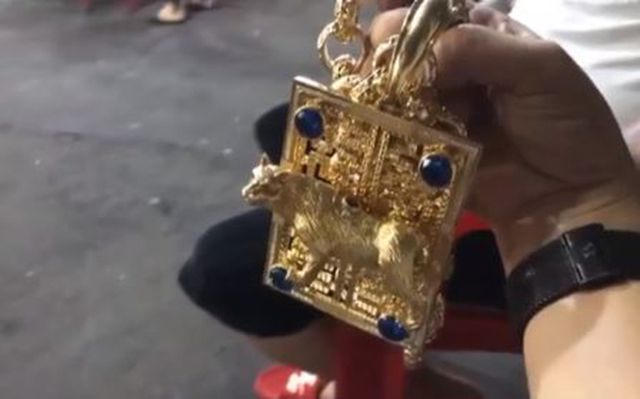 Chiếc dây chuyền vàng trị giá cả tỷ đồng được anh Dũng đeo trên người.