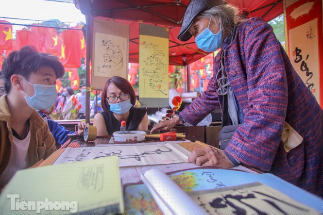 Tại Hồ Văn-Văn Miếu, việc xin chữ đầu năm được diễn ra từ ngày 5/2 nhưng không tổ chức khai mạc, ông đồ ở đây cũng bắt buộc phải đeo khẩu trang, thậm chí bàn có tấm kính chắn để đảm bảo an toàn khi thực hiện việc cho chữ trong dịp Tết này.