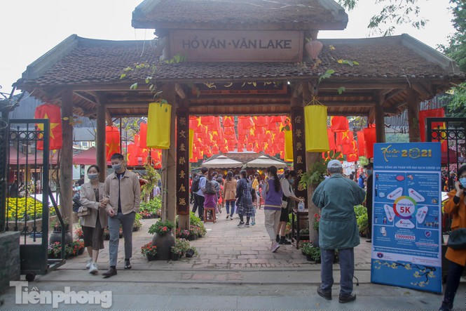 Ghi nhận của PV trong những ngày đầu năm mới, khá đông người dân đến du xuân chơi Tết tại khu vực Văn Miếu-Quốc Tử Giám, Hồ Văn. Để vào khu vực trên, người dân bắt buộc phải đeo khẩu trang, giữ khoảng cách, rửa tay bằng xà phòng và nước diệt khuẩn bên ngoài cổng, nhà vệ sinh để phòng dịch COVID-19.