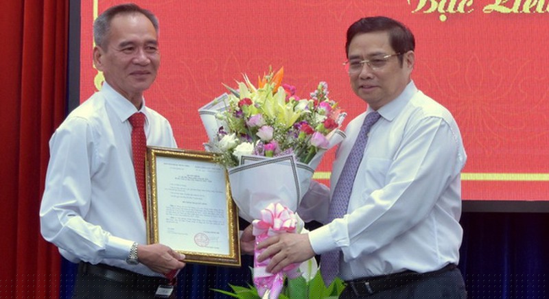 Trưởng Ban Tổ chức Trung ương Phạm Minh Chính trao Quyết định của Bộ Chính trị bổ nhiệm ông Lữ Văn Hùng giữ chức Bí thư Tỉnh ủy Bạc Liêu nhiệm kỳ 2015-2020.