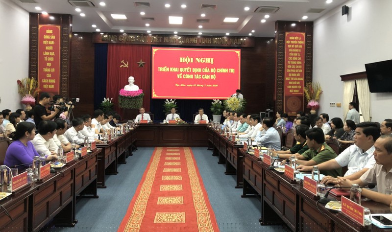 Quang cảnh hội nghị triển khai các quyết định của Bộ Chính trị về công tác cán bộ.