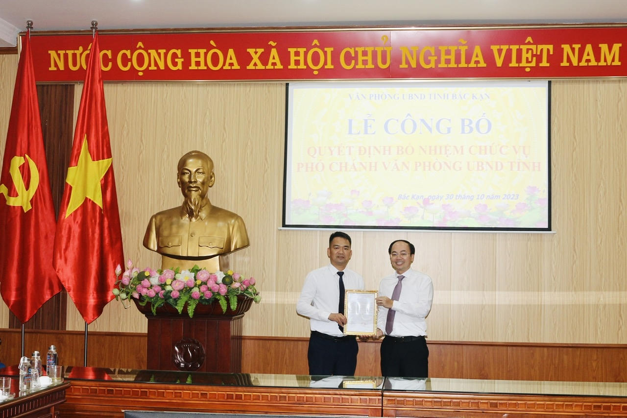 Chiều 30/10, Văn phòng UBND tỉnh Bắc Kạn đã tổ chức Lễ công bố Quyết định bổ nhiệm chức vụ Phó Chánh Văn phòng.