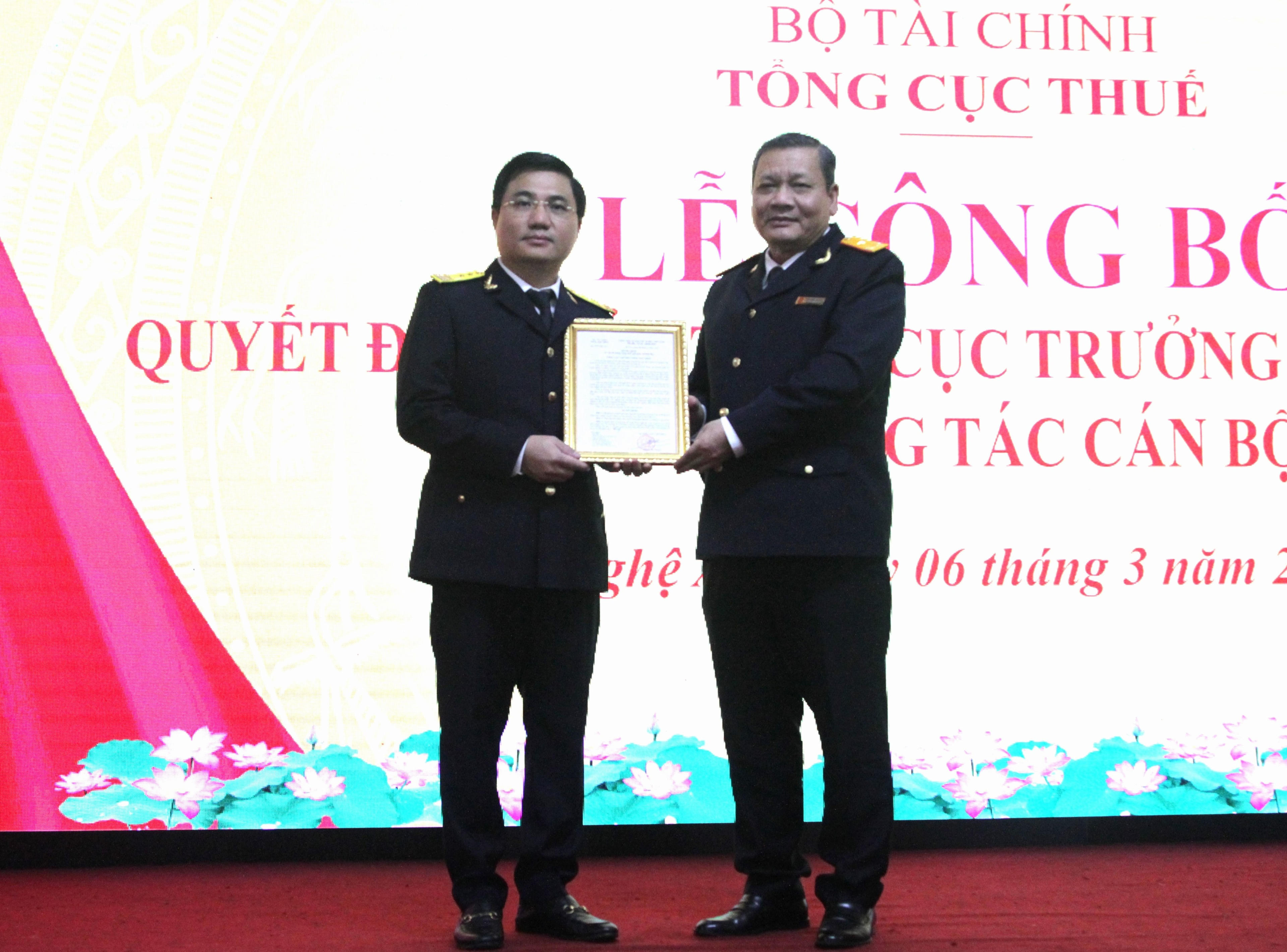 Trao Quyết định bổ nhiệm Cục trưởng Cục thế Nghệ An cho ông Nguyễn Đình Đức.