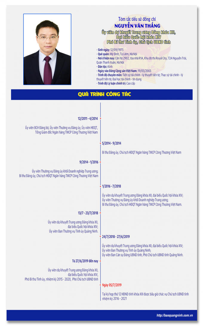 Quá trình công tác của ông Nguyên Văn Thắng-Chủ tịch UBND tỉnh Quảng Ninh.