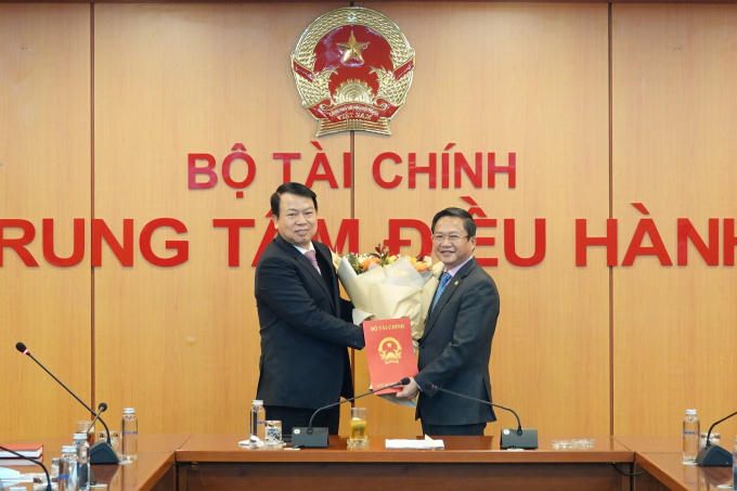 Thứ trưởng Bộ Tài chính Nguyễn Đức Chi trao quyết định bổ nhiệm cho ông Phạm Chí Thanh (phải). (Ảnh: Bộ Tài chính)