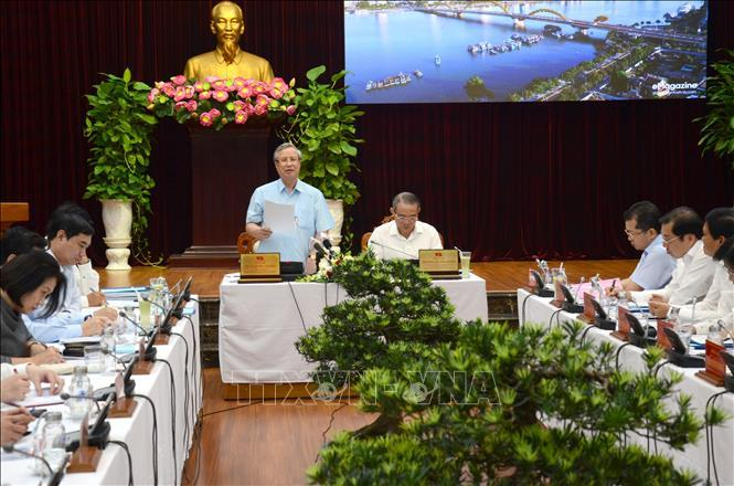 Tại buổi làm việc, Phó Bí thư Thường trực Thành ủy Nguyễn Văn Quảng báo cáo tóm tắt kết quả thực hiện các nhiệm vụ công tác của Đảng bộ thành phố thời gian qua.