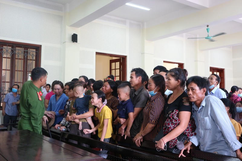 Giờ nghị án, rất nhiều tiếng khóc của người thân, con cái của các bị cáo vang lên. 3 đứa con của bị cáo Duận đã gào khóc gọi tên bố trong vô vọng. Chỉ đến khi nhìn vợ con khóc, đôi mắt của Duận mới đỏ hoe. Không được bế đứa con mới 1 tuổi, Duận bất lực ngồi nhìn, rơi nước mắt trong bất lực.