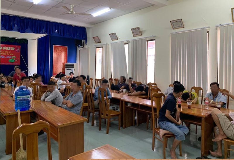 Nhóm người được đưa về trụ sở công an lấy lời khai làm rõ. Qua kiểm tra nhanh, ba người được xác định dương tính với ma túy.