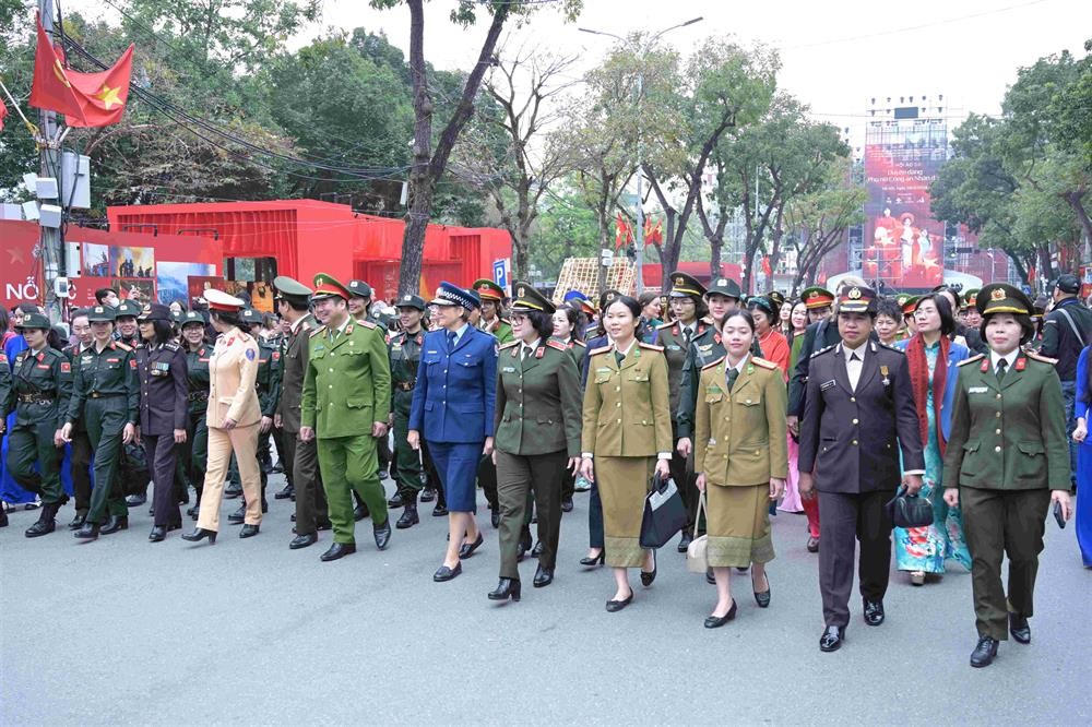 Gần 1.000 hội viên phụ nữ mang trên mình đủ màu sắc của các lực lượng Công an nhân dân (CAND) cùng với sự đồng hành của các bạn bè quốc tế, các nữ cảnh sát quốc tế… và nhân dân đã tham gia diễu hành, biểu dương lực lượng trên các tuyến phố xung quanh khu vực hồ Hoàn Kiếm, Hà Nội.