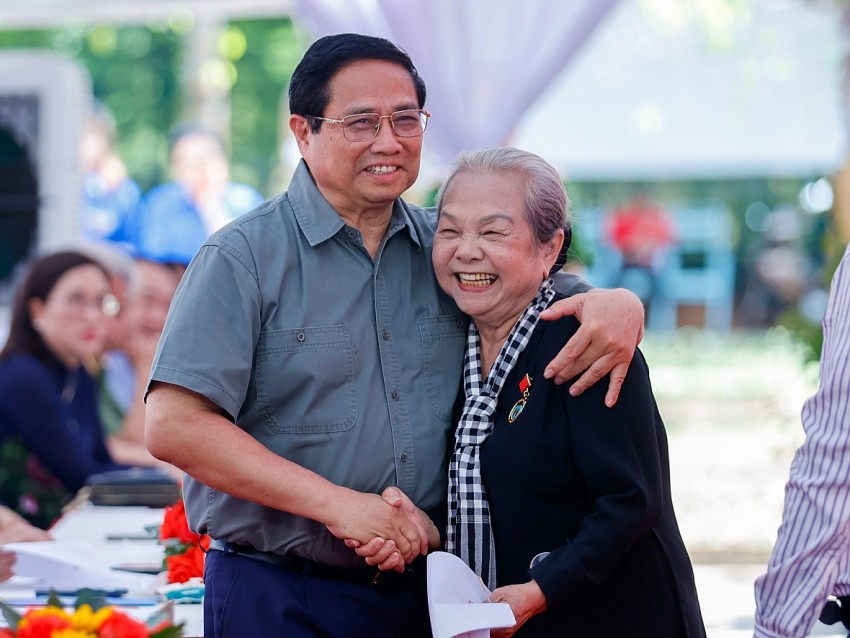 | Nhân dịp này, Thủ tướng đề nghị các ban, bộ, ngành, địa phương phát huy truyền thống "Đền ơn đáp nghĩa", tiếp tục quan tâm giải quyết tốt các chính sách, chăm lo đời sống vật chất, tinh thần cho các đồng chí chiến sĩ bị địch bắt tù đày, gia đình thương binh, liệt sĩ; thực hiện chính sách cho người có công với chế độ ngày càng tốt hơn. Thủ tướng đánh giá, để những câu chuyện về sự đấu tranh, hy sinh bất khuất của các chiến sĩ cách mạng cựu tù chính trị không chỉ là ký ức lịch sử mà còn là ngọn lửa soi đường cho các thế hệ hôm nay và mai sau thì Ban Liên lạc Chiến sĩ Cách mạng toàn quốc bị địch bắt và tù đày có vai trò rất quan trọng. Thay mặt lãnh đạo Đảng và Nhà nước, Thủ tướng trân trọng ghi nhận, đánh giá cao, cảm ơn công sức và những kết quả công tác rất đáng trân quý mà Ban Liên lạc đã làm được trong thời gian qua. Thủ tướng giao Bộ Nội vụ, các bộ, ngành liên quan triển khai xây dựng đề án cơ sở dữ liệu về cựu tù chính trị bị địch bắt, tù đày và cuộc đấu tranh đầy hy sinh, gian khổ nhưng vô cùng anh dũng của các cựu tù. Thủ tướng nêu rõ, trong năm 2025 có nhiều ý nghĩa này, Đảng, Nhà nước và nhân dân ta đang quyết liệt triển khai nhiều nhiệm vụ chiến lược như cách mạng tinh gọn bộ máy, tháo gỡ điểm nghẽn thể chế, phát triển đột phá khoa học, công nghệ, đổi mới sáng tạo và chuyển đổi số, hội nhập quốc tế trong bối cảnh mới, thúc đẩy phát triển kinh tế tư nhân là động lực quan trọng nhất, phấn đấu tăng trưởng GDP năm 2025 từ 8% và hai con số trong những năm tới, đồng thời có nhiều hoạt động bày tỏ biết ơn sự hy sinh, cống hiến to lớn của các anh hùng liệt sĩ. Thủ tướng nhấn mạnh, trong đó, sự tri ân có ý nghĩa nhất chính là quyết tâm hành động, bằng những hành động cụ thể, mang lại kết quả cân đong đo đếm được để thực hiện thành công Nghị quyết Đại hội XIII của Đảng, thực hiện thành công tâm nguyện của Chủ tịch Hồ Chí Minh, ước vọng của toàn dân tộc, đưa đất nước vào kỷ nguyên mới, phát triển giàu mạnh, văn minh, thịnh vượng, nhân dân ngày càng hạnh phúc và ấm no. |