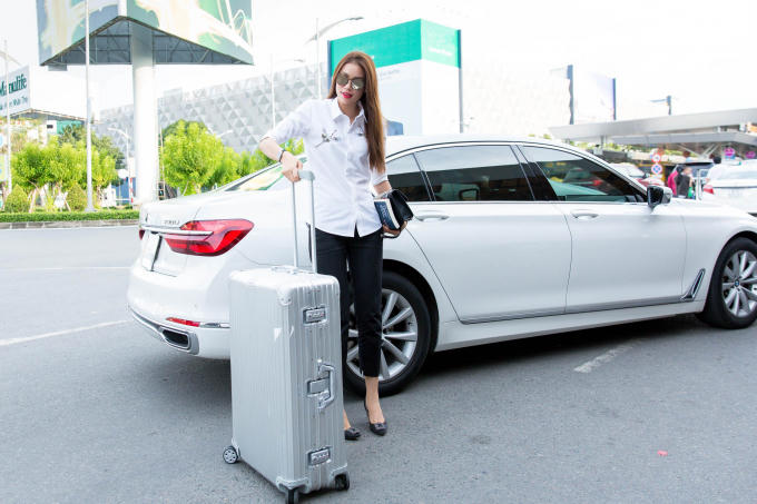 Vừa ghi hình Hoa hậu Hoàn vũ vừa chuẩn bị cho "Đấu Trường Phong Cách", Phạm Hương vẫn tươi tắn ở sân bay.