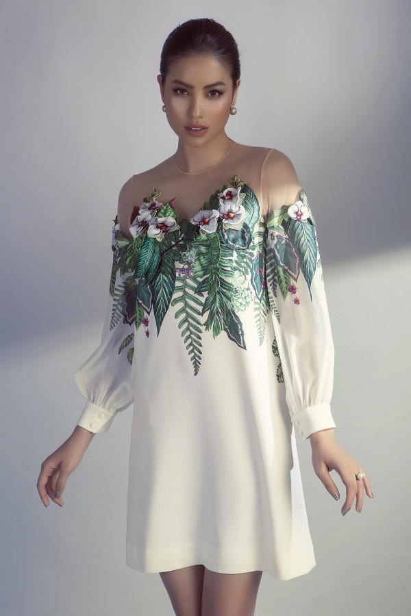 Hoa hậu Hoàn vũ Việt Nam 2015 thể hiện trọn vẹn tinh thần của bộ sưu tập “Em Hoa” của nhà thiết kế Công Trí.