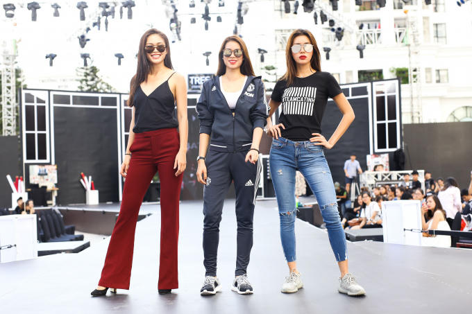 Ba cô gái diện trang phục theo phong cách năng động, tối giản nhưng vẫn đủ sức thu hút mọi ánh nhìn của những người có mặt. Họ dành nhiều thời gian trao đổi kịch bản với giám đốc catwalk Nhã Trúc về kịch bản và màn xuất hiện của mình để tạo ra ấn tượng tốt nhất với khán giả.