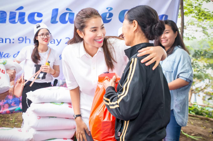 Trao 27 phần quà gồm gạo, nhu yếu phẩm, quần áo…Phạm Hương đã mang đến nhiều niềm vui đến với “thôn tự quản” hẻo lánh này. Đặc biệt, Phạm Hương còn trao 18 con heo đất, trong mỗi heo đất có 500 nghìn đồng, để tặng các cháu nhỏ cùng các em học sinh. Phạm Hương muốn nhắn nhủ thông điệp “tiết kiệm” để các em biết gìn giữ và tiết kiệm để sau này có cuộc sống tốt hơn.