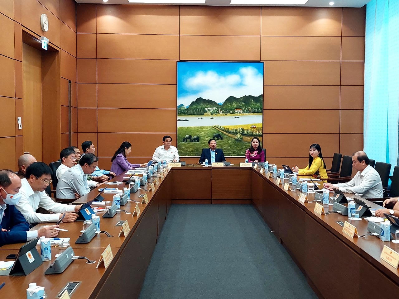 Thủ tướng Phạm Minh Chính dự thảo luận tại tổ 4, gồm các đoàn đại biểu Quốc hội tỉnh Cần Thơ, Điện Biên, An Giang và Kon Tum.