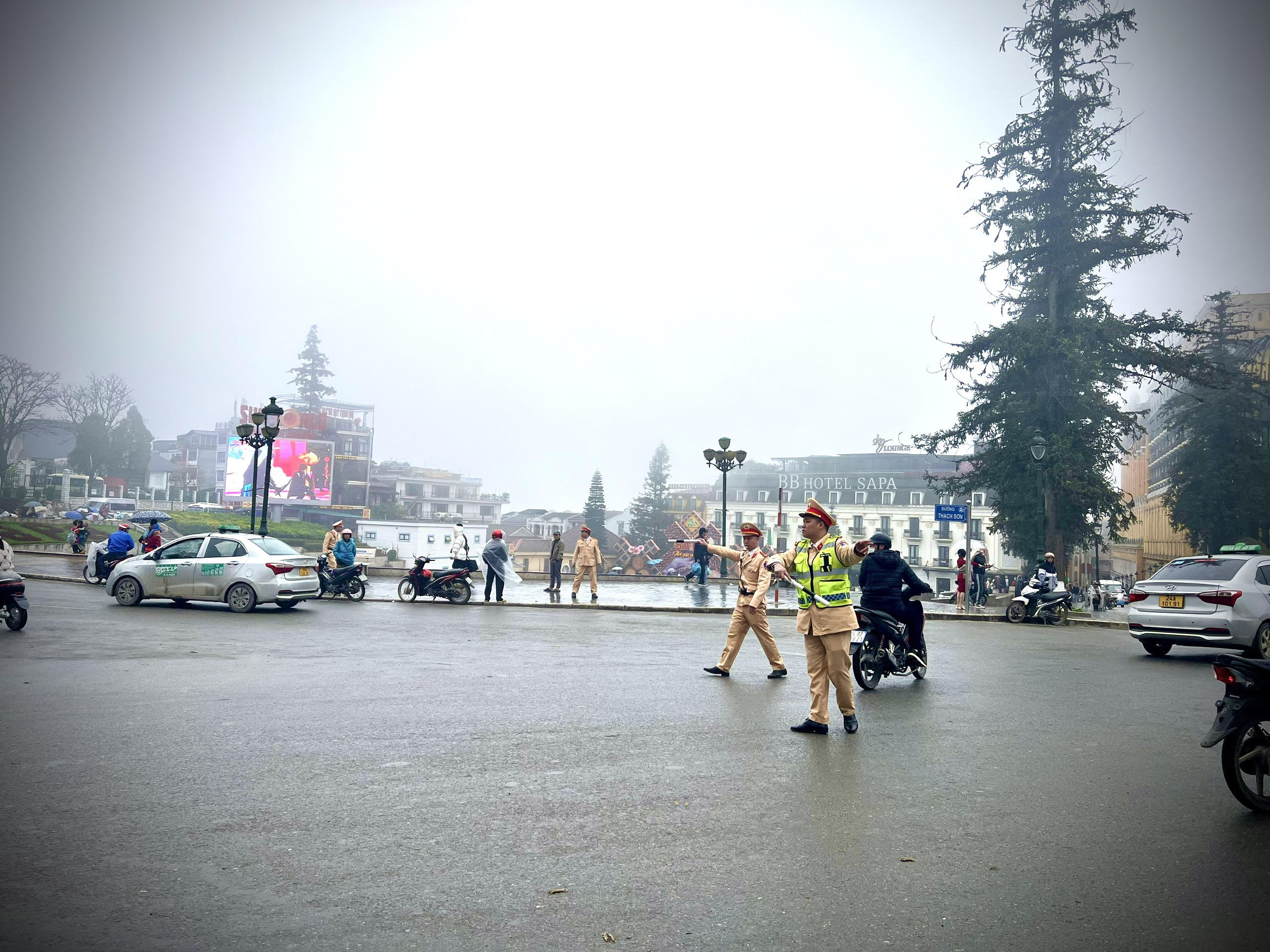 Công an thị xã Sa Pa thành lập 25 chốt đảm bảo trật tự giao thông, bố trí 02 tổ cảnh sát dẫn Đoàn, 02 tổ tuần tra lưu động để triển khai thực hiện.