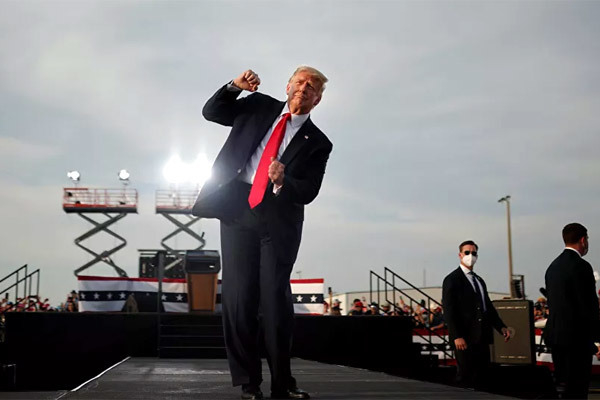 Biểu cảm vui mừng của cựu Tổng thống Mỹ Donald Trump. Ảnh: Reuters