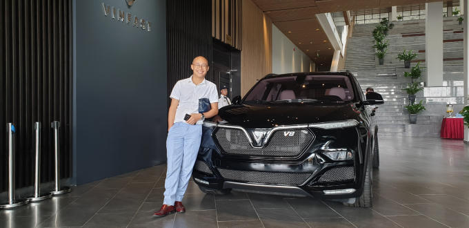 Nhà báo Vũ Quang trong buổi ra mắt xe hãng xe Vinfast của Tập đoàn Vin Group.
