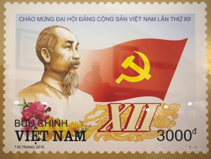 Bộ tem “Chào mừng Đại hội Đảng Cộng sản Việt Nam lần thứ XII” do họa sỹ Tô Minh Trang (Tổng Công ty Bưu điện Việt Nam) thiết kế với khuôn khổ tem 32 x 43 mm.