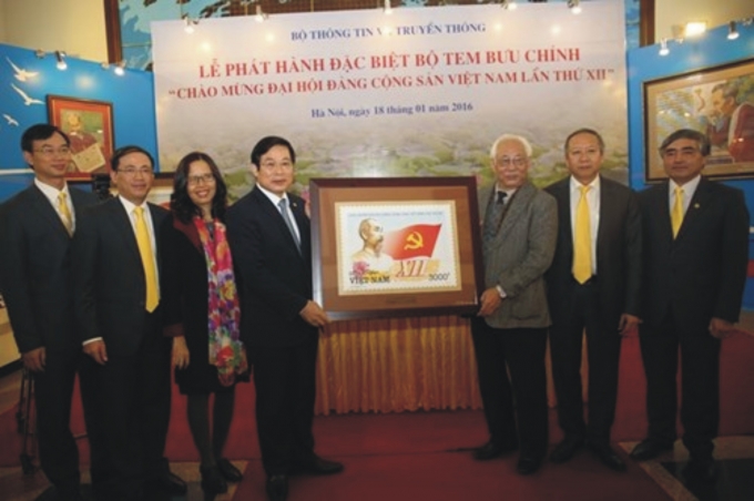 Ngày 18/1/2016, tại Hà Nội, Bộ TT&TT tổ chức buổi lễ phát hành đặc biệt bộ tem bưu chính “Chào mừng Đại hội Đảng Cộng sản Việt Nam lần thứ XII”.