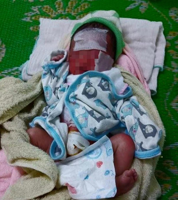 Bé này còn nguyên dây rốn, bánh nhau và trên cơ thể không có một mảnh vải.