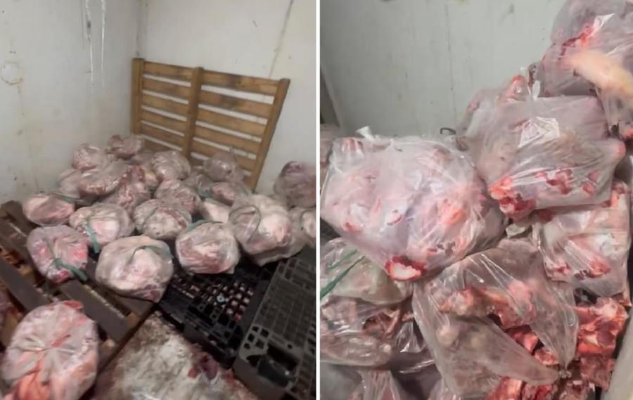 Kiểm tra tại khu vực giết mổ, một tủ đông chứa khoảng 70kg thịt heo đã bốc mùi hôi, biến đổi màu sắc. Kiểm tra kho đông lạnh của cơ sở, lực lượng chức năng tiếp tục phát hiện thêm khoảng 479kg thịt heo trong tình trạng tương tự, không đảm bảo vệ sinh an toàn thực phẩm.