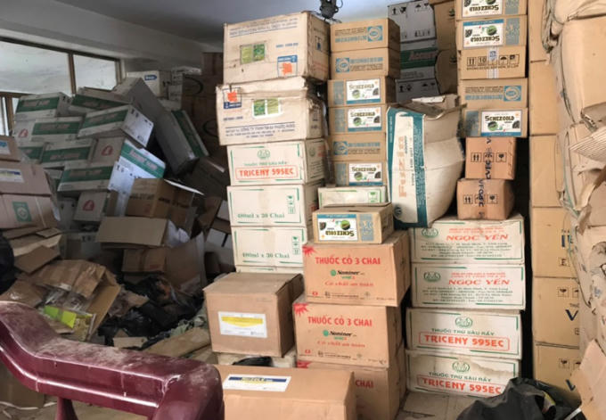 Hơn 446.500 sản phẩm thuốc BVTV hết hạn tại một cửa hàng An Giang. Ảnh Tiến Tầm
