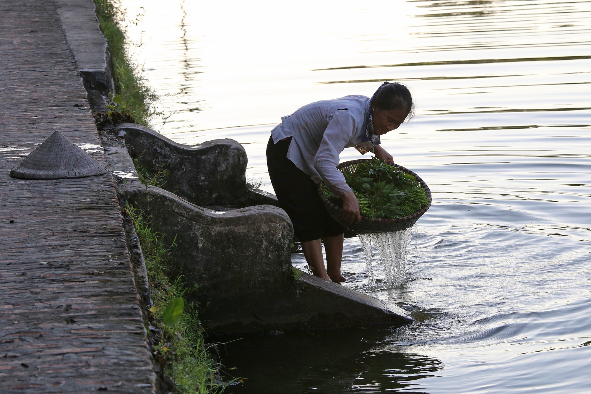 Đường làng lát gạch đỏ, bờ ao kết hợp rất nhiều "bến nước". Xưa những cầu ao này thường được người dân sử dụng để rửa chân tay hay xuống lấy nước.