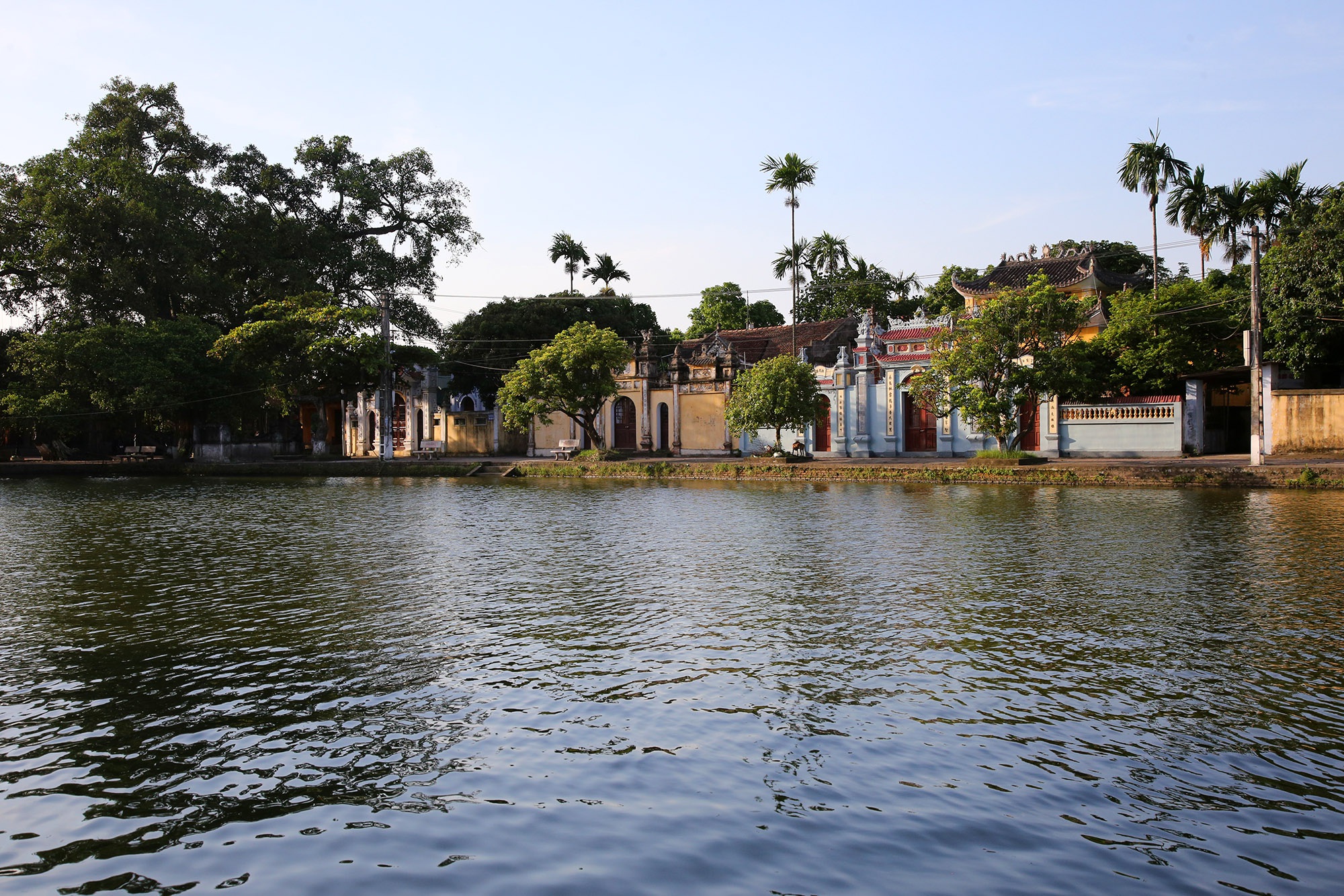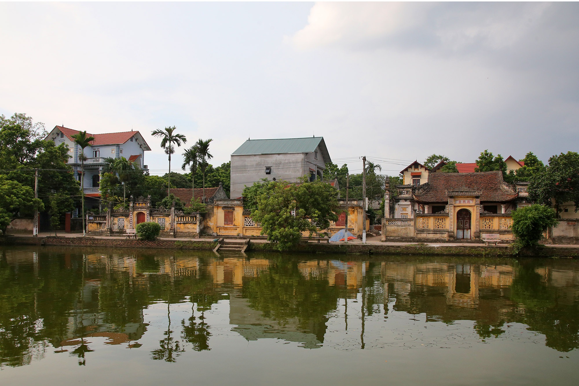 Đường làng lát gạch đỏ, bờ ao kết hợp rất nhiều "bến nước". Xưa những cầu ao này thường được người dân sử dụng để rửa chân tay hay xuống lấy nước.